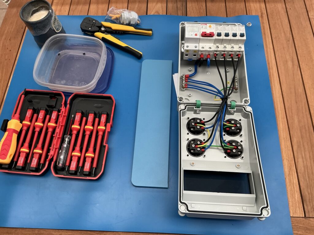 First step was wiring the battery to the chargeverter. The battery comes with battery cables that are ring terminated. They work perfectly with the Sunpower chargeverter. Before making any connections, ensure the battery and chargeverter breakers are off. The insulated screwdriver set is magnetic, allowing the lugs for the chargeverter to be carefully lowered into place. Internal components in the chargeverter, especially larger capacitors, can hold a charge even when powered off. Better to be safe than sorry and use the insulated screwdriver set.