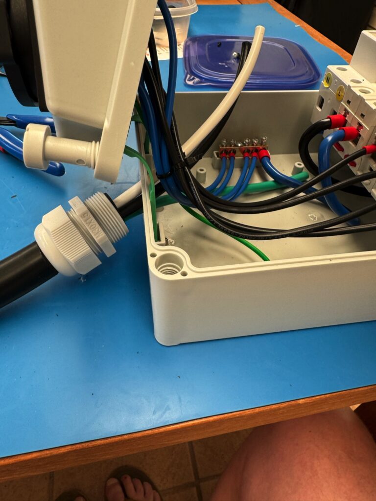 - This cable is about 1/4″ too thick to fit easily into the JINDOUZI input gland or the Sunpower chargeverter.