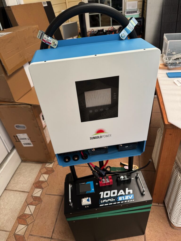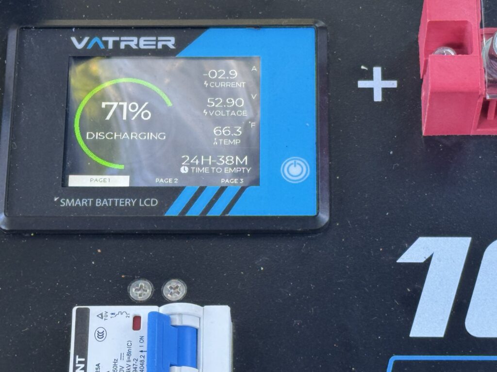 Inverter: 5 Kw max output , so ~ 50Kwh of power storage / 5 Kw = 10 hours if run “full tilt” (we won’t be doing that).