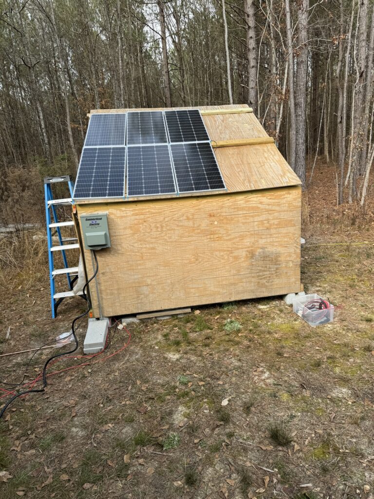 This is the “best case sunny day” scenario. In reality we rarely see over 60% output from the array even in full sun. We would LOVE to see an 80% output from the panels, but that is going to be very rare and thus we are coming in at maximum 480 watts from our panels to the charge controller.